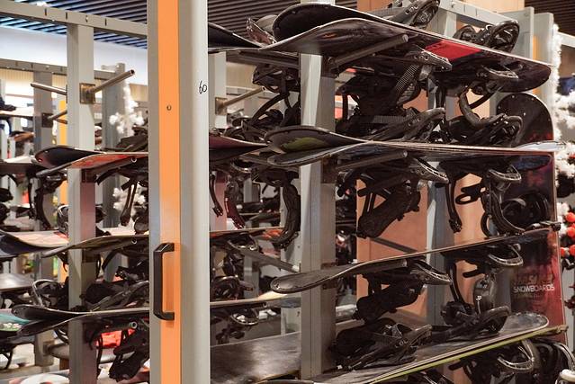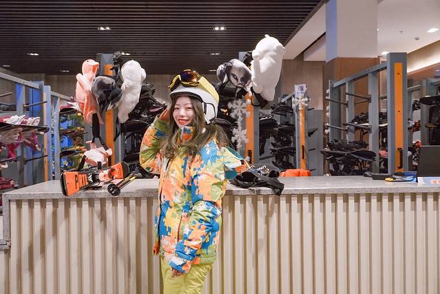 雪场2楼学具租赁区,分别有单板和双板区域,为我们提供了尺码、款式丰富的雪靴、雪板、头盔、手套、雪服等必备装备,也有各种萌趣可爱等防摔神奇,如果你是初学者,建议租赁此物,系上小乌龟、皮卡丘、小黄人等保平安哈哈哈~
