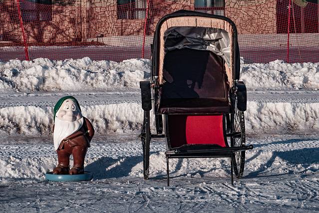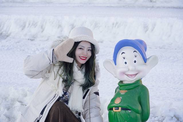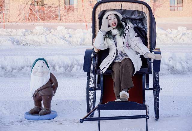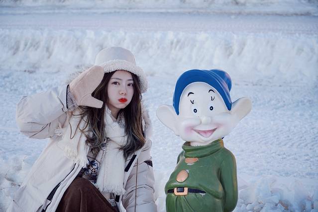这个冰上黄包车真的有点可爱,旁边就是小矮人,坐上去你就是白雪公主啦!有专门都工作人员可以拉车~