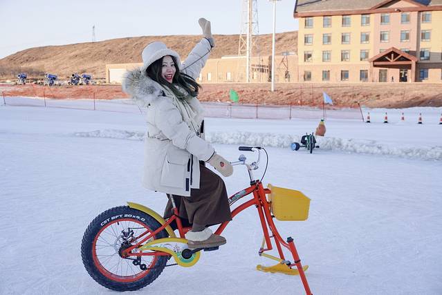 在京城什刹海体验过冰上自行车的快乐,又来这里体验升级版雪地自行车,男女老少皆宜,运动都乐趣值得体验~