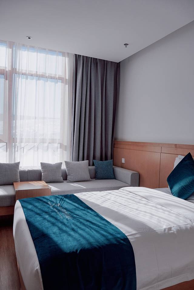 度假酒店总建设面积19850㎡,十分宽敞,共有五层,设有大床房、标准房、特色套房等138 间,可同时接待294 人居住。带着家人来度假的,老人小孩都能舒适都入住。五楼配备酒店餐厅,环境舒适整洁,特聘五星级酒店厨师团队,中西餐都有。喜欢泡酒店的朋友,这里也不会让你失望。我对度假酒店对要求就是如入住舒适体验度,而这个房间对床品、备品、空间设置等都能满足我都体验感受。冬季入住会配备取暖小太阳,南方人也不怕冷啦;夏天入住这里则是天然空调,饱览大草原都景观,睡个自然醒,十分惬意啦~