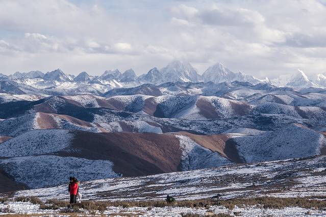 鱼子西,这个本就很好听的名字,我们的车一路爬坡到了山顶上,雅拉雪山鹤立在眼前,贡嘎雪山被云儿遮住,稍许害羞。上来以后才发现这是一个毫无遮挡的绝佳观景平台,不需要花钱就可以看到此等美景。