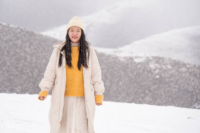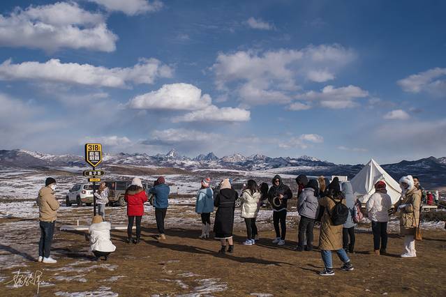 山顶有星空营地供人们选择住宿,也有售卖一些饮料烤肠,就着近处的白色帐篷和远处的雪山同框拍照,还是很特别的。冬天的高原,真的很美,但实在太冷了。让我在这山头露营,我还是会打退堂鼓,但如果是夏日来到这里应该会很舒服吧。