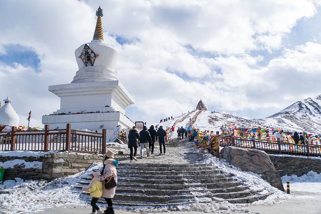 雪是越下越大,到了山顶,才发现从前的白帐篷现在已经变成了黑色联排房子。小马哥第一个到的山顶,我看着他横穿整个冷嘎措,因为完全冻住了,我们的眼前只剩下一片雪白,压根见不到冷嘎措的影子。