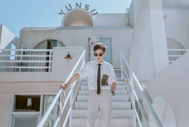 一座充满地中海风情的海边小镇.蓝白色调.小清新的感觉.拍照非常甜美.