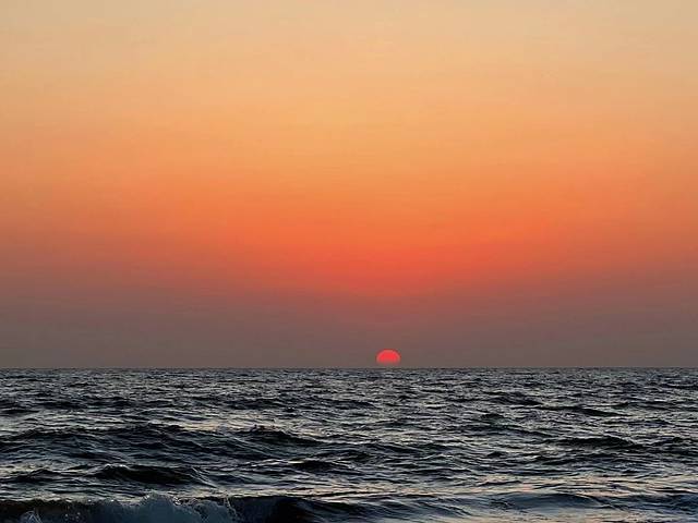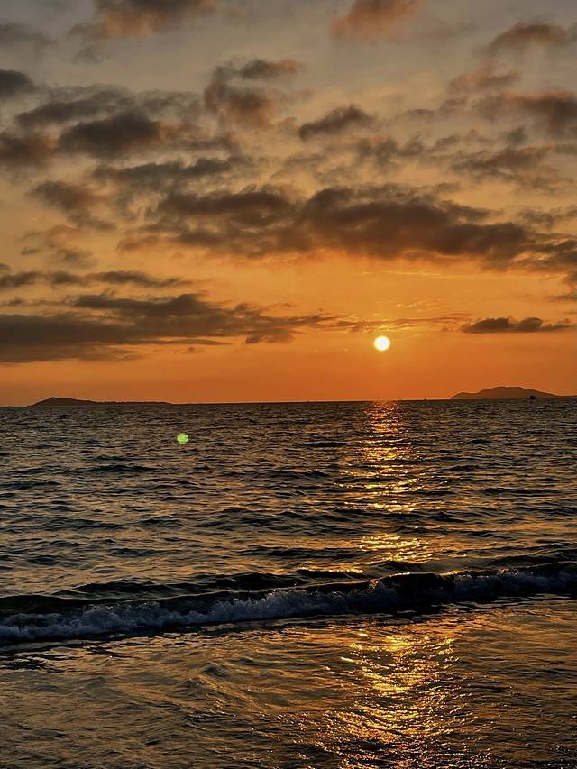 🍊夕阳洒在沙滩上非常唯美.(海边风很大.紫外线很强.)