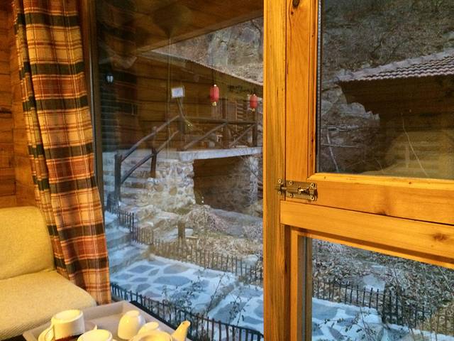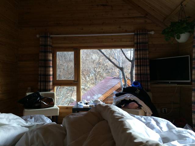 小木屋还是挺有感觉的,屋里通了暖气还可以把空调再打开,晚上睡觉还是会觉得有一点冷。