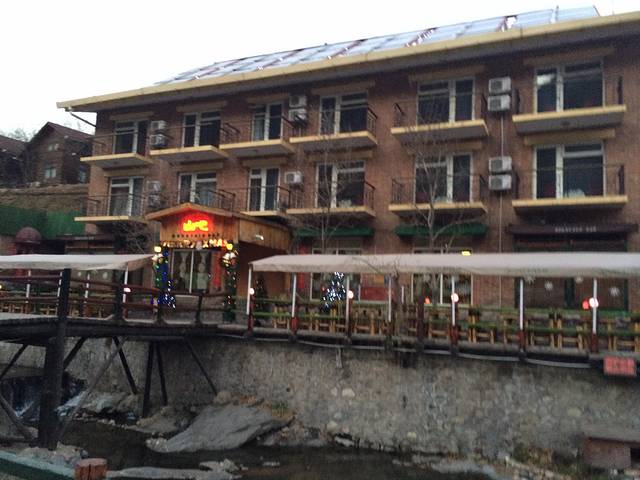 赶在华灯初上之时到了山吧,山吧上住宿都是在山上的小木屋,有双人间 家庭房等等,可供选择的房间挺多,价格是从700元到3000元,我们选了个离山吧饭店不远的山居小木屋,价格好像是700左右。