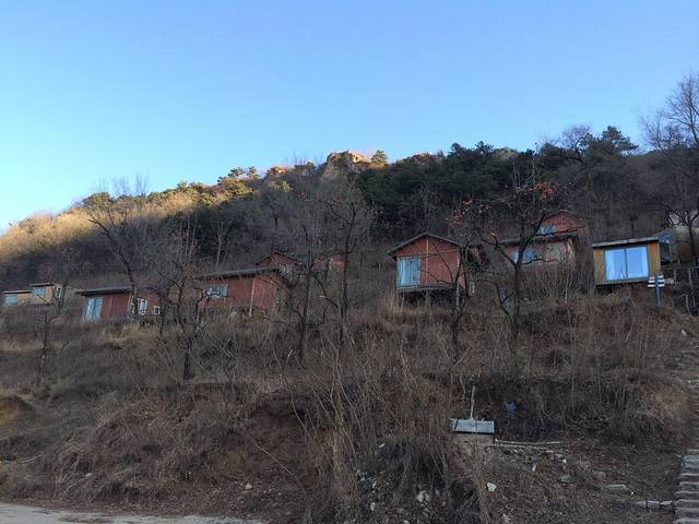 这个地方原本有些小木屋 现在都破败了应该有段时间没有开了 就是这么一个远眺金海湖的位置还算能欣赏点景色。