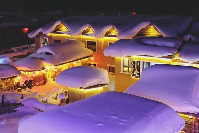 雪乡受贝加尔湖冷空气与日本海暖湿气流交汇的影响,每年雪期长达7个月,积雪可以达到2米。