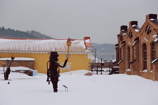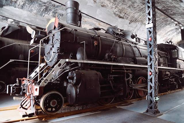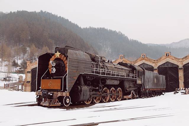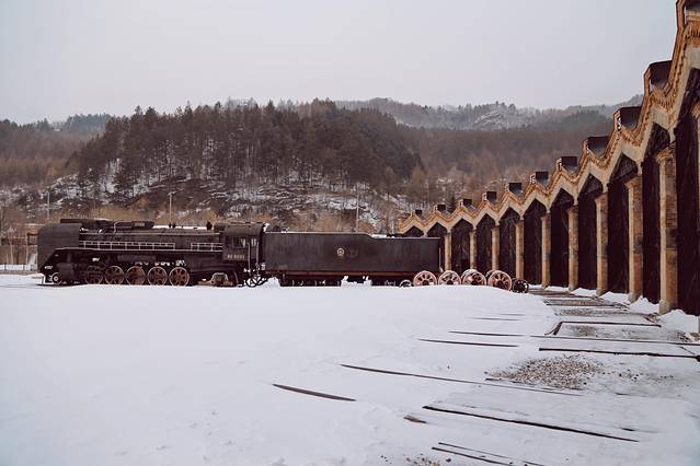 最先来到机务段运转室旧址,它建于1900-1935年,俄式机车库院里馆藏着几台古老的蒸汽机车,还是电影《3D智取威虎山》的主要取景地。