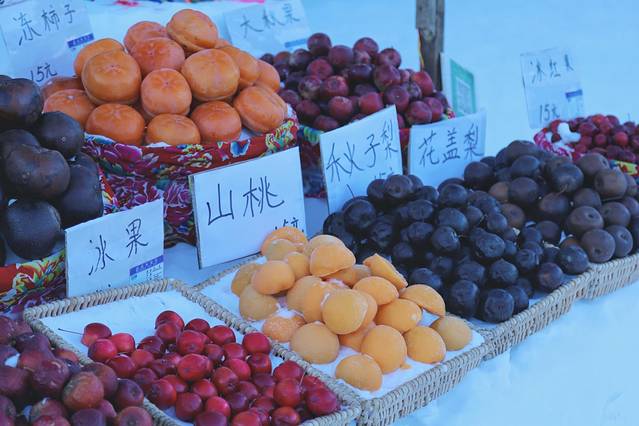雪韵大街是雪乡的主街,两侧是酒店客栈/餐厅/商店小卖铺,门口摆着冻梨这些东北特色小吃。