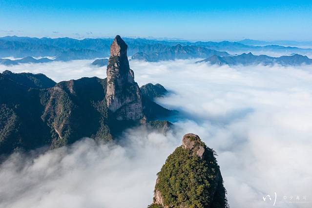 迎面擎天一柱,酷似观音双手合十,这就是观音峰,海拔919米,号称天下第一观音。