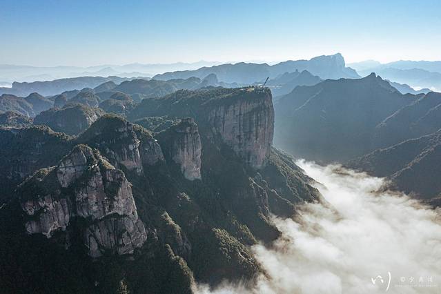 登顶就来到了太极八卦台,位于崇山峻岭间,是一个绝佳的观景地,可以远看到卧龙桥,上帝视角下还能看到神仙居的地貌。