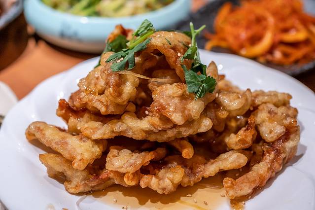 老大连软炸肉:一道大连本地特色的菜,不看名字,端上来会以为是川渝的小酥肉,虽然是油炸的,但不油也不硬,真的非常软,很嫩,切的很薄,椒盐含够味。