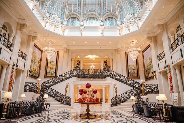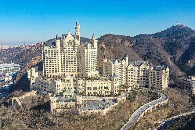 酒店是大连的地标建筑之一,外观是巴伐利亚风格的城堡,矗立在半山腰有德国新天鹅堡的即视感。玻璃屋顶/水晶灯/旋转楼梯…酒店里的每个细节都是奢华的欧式宫廷风,仿佛变身童话里的在逃公主。🕌5楼的空中花园必打卡,不入住酒店也🉑️参观,有点像西班牙的阿尔罕布拉宫,露台尽头可以俯瞰星海湾大桥,把大连最美的风景尽收眼底。