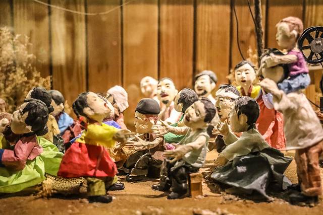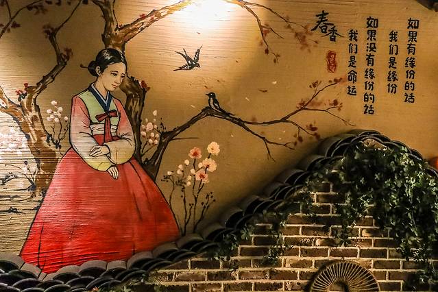店内墙面上都挂了非常有特色的插画,好像都有着属于自己的典故。这里还原度超高的延边木屋博物馆式的陈列,随处拍一张,都有一种在韩剧中的感觉,很温暖很舒适。这里有单独私密的包间,脱鞋进去盘腿而坐即可,真的超像在韩国的吃饭方式。原木色的装修风格,有一种回归田园的感觉。