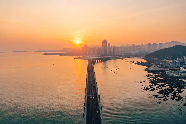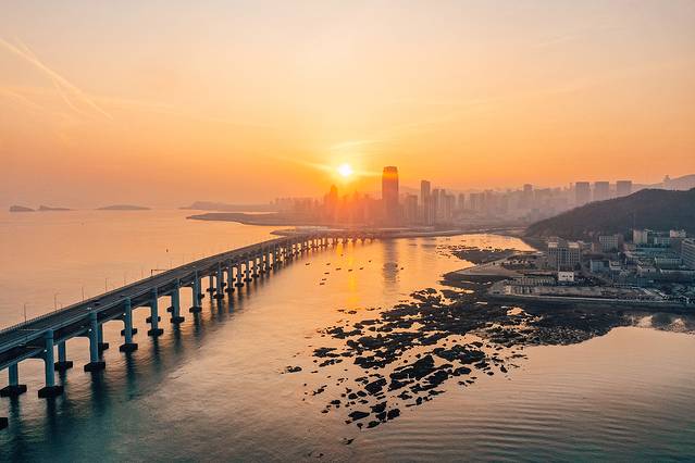 星海湾大桥:横跨在海中,海天一色,仿佛尽头是人间仙境。