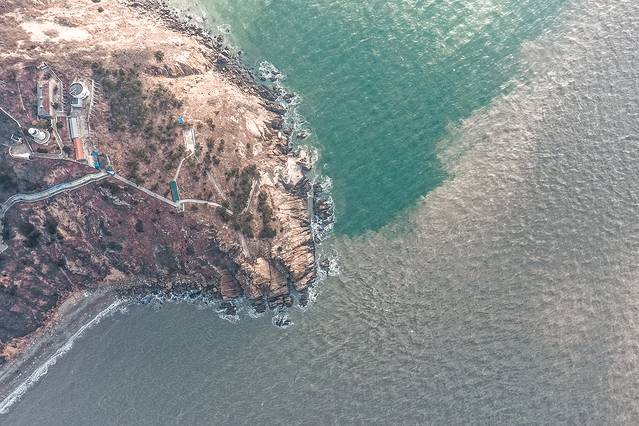 亲眼看世界自然奇观,是一件让人非常惊喜的事情。全中国也就俩地儿能看到,之前在山东烟台蓬莱那里可以看,再就是今天这辽宁大连旅顺口了。青色蓝绿色的是黄海的水,青灰色是渤海的水,就在眼前融为一体。