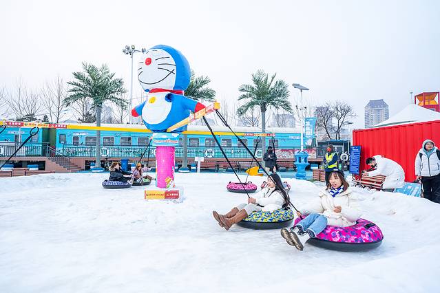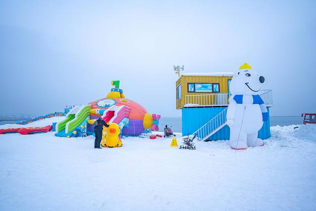 塔河湾欢乐雪世界:这里是大海边的冰雪世界,白色的雪蓝色的海,一个让人童心萌发的冰雪亲子乐园。在这里,你可以坐雪圈、冰滑梯、雪国列车、雪地大黄鸭,难度都不高,有趣又可爱,特别适合凹造型拍照片。夏天是热带海岸的景,冬天变成了北国之境的范儿,来到这里,你要尽情的撒欢就好!