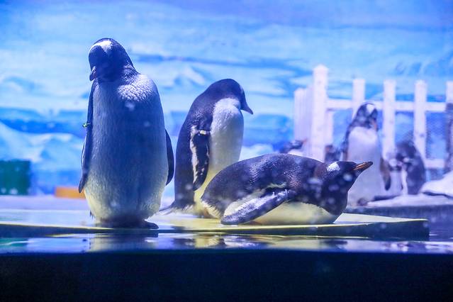 极地海洋动物馆:主体建筑为三层,局部四层。该馆主要分为六部分,极地动物展示、极地体验、科普教育、海底世界和海洋动物表演场及服务区。