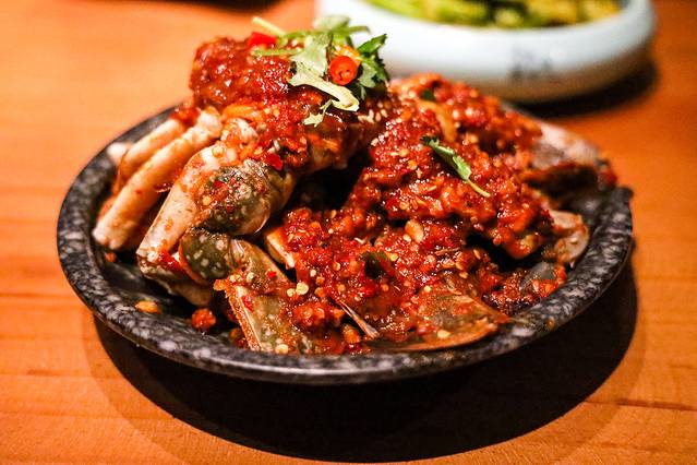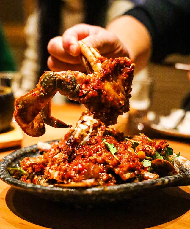 凉拌蟹:在韩剧中经常看到的凉拌蟹式朝鲜族的特色菜,恩你小木屋会根据季节选用不同的蟹来作为主食材,然后用朝鲜族辣酱直接生拌,腌制2天再食用。