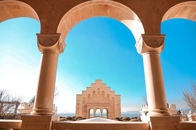 一方城堡:如名,是一座城堡,拥有着时尚与浪漫,最佳拍摄点是一楼大厅正中间的楼梯和5楼的露天花园,现在这两个地方已经成为城堡的网红点,不管住不住这里,只要来大连,都会来拍照打卡。