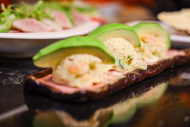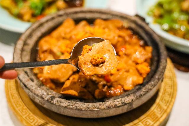 芝士焗蟹肉:必点的招牌菜,一整只剥好的蟹,蟹肉与蟹黄捣碎配上满满的芝士,放在蟹壳形状的碗里,经过烤制后,一勺挖入口,满足感绝对的。