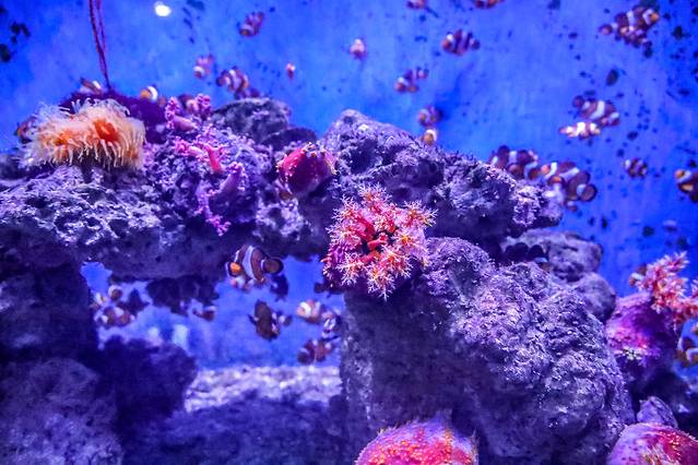 珊瑚馆:亚洲最大的以展示珊瑚礁生物群为主的海洋生物馆,展示珊瑚礁生物群200余种、3000多个。精品鱼类展区更有来自西南太平洋海域的活珊瑚、活海葵、贝类及其他珊瑚礁精品鱼类。海底实验室区域有漩涡鱼、电子像册、潜望镜、电子显微镜、真空水槽、水下音乐会等游客参与性项目。表演场中有精彩的水中芭蕾、美人鱼表演、水下梦幻婚礼等表演。