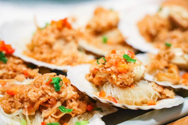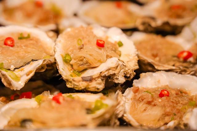 蒜蓉蒸粉丝扇贝:蒜蓉、粉丝、生蚝,超级经典的搭配,完全不会出错,可以放心点。