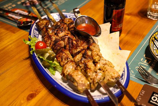 俄罗斯猪肉大串:必点,名副其实的大串,很大很好吃,一串够2个人吃,烤的很入味,咸淡刚好。