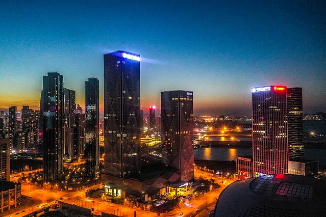 东港商务区:大连CBD,这里是经过改造和填海建地成立起来的,是一处集商务、金融总部办公、娱乐、文化、体育、旅游、休闲、居住为一体的综合商务区,不得不提的就是,这里的夜景真的超级时尚,繁华。