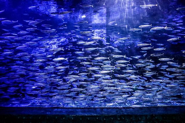 第二层:海洋展厅,有鱼类和哺乳动物。