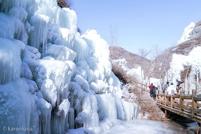 其实现在北京近郊成规模的冰瀑有很多,黑龙潭、神泉峡、凤凰岭、云蒙峡等等,都是拍照好看的热门景点了。随便在网上一搜,各种各样的拍照攻略铺天盖地。虽然看上去都很梦幻很仙境,但个人感觉其实每个景点都有些大同小异,毕竟这些冰瀑不是天然形成的,很多都是景区人为造出来的景观。所以这次周末自驾游并没有一味的追求一定要去哪个景区拍照,而是选择了离家相对近一点的云瀑沟,来场久违的冰雪奇缘的邂逅。