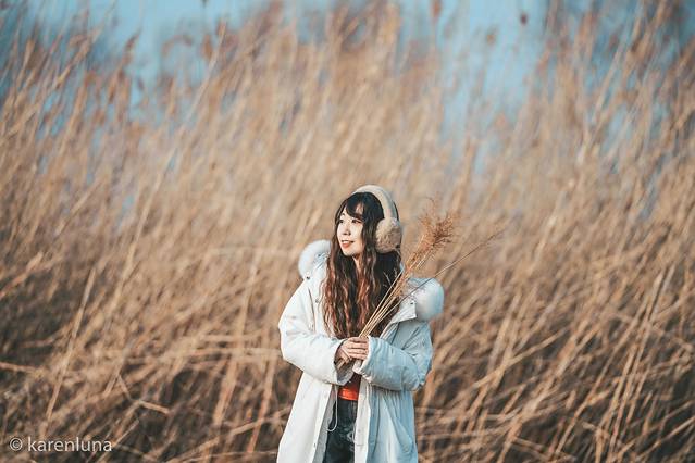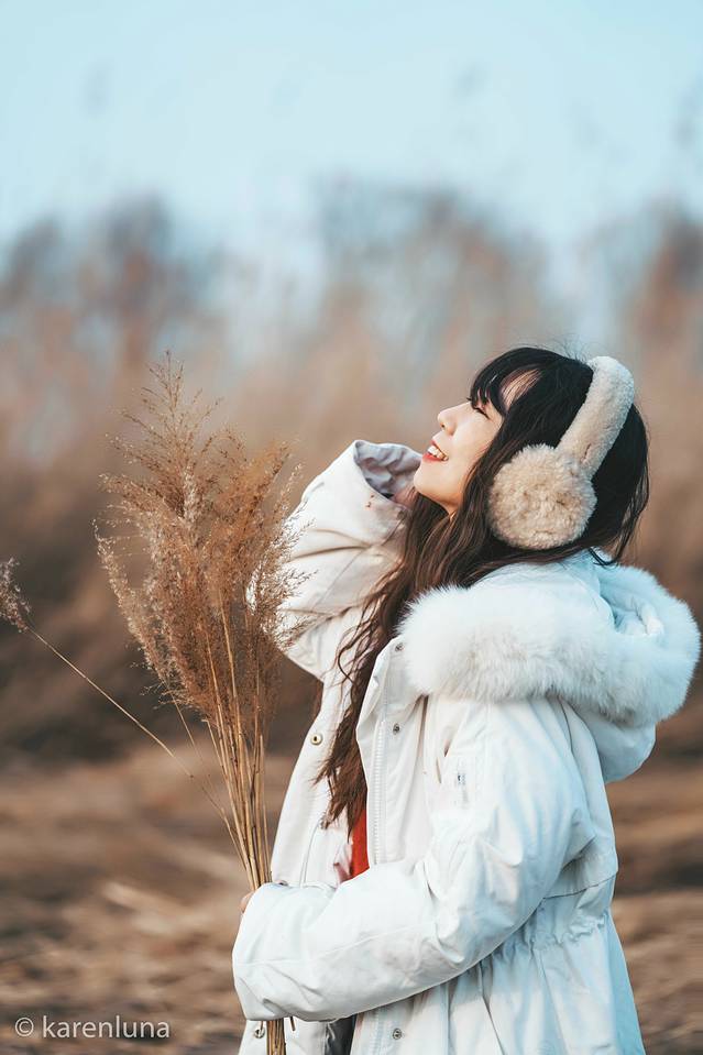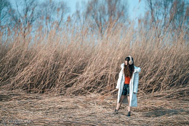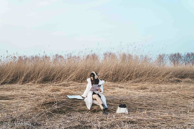 而反季节旅行的好处就是周围真的没有人。无论是行走在昔日芦苇包围着的栈道上、还是坐在干枯芦苇草垛上,想拍出人像美照简直是分分钟的事儿。