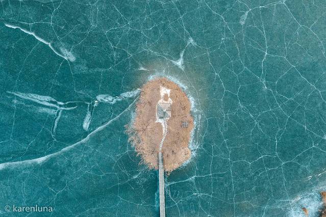 站在已经冻冰了的湖心岛上,看着远处的夕阳渐渐划过地平线,两天一晚的自驾旅行也随之结束。