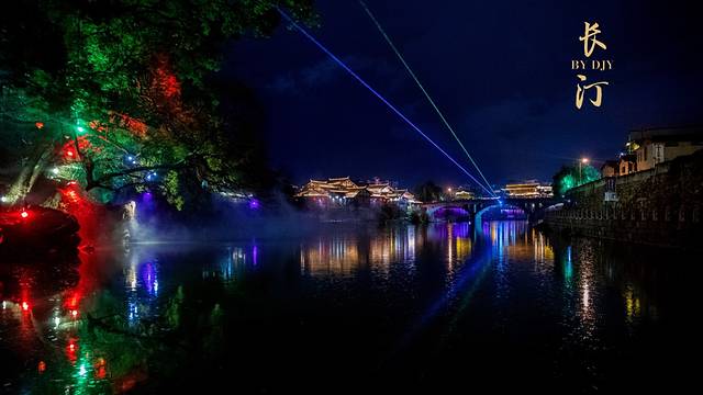 慢慢行,细细看,汀江夜景相当不错,彩灯一开,五彩斑斓,夜色撩人。两岸亭台楼阁,交相辉映,人文景观与自然风光融为了一体。