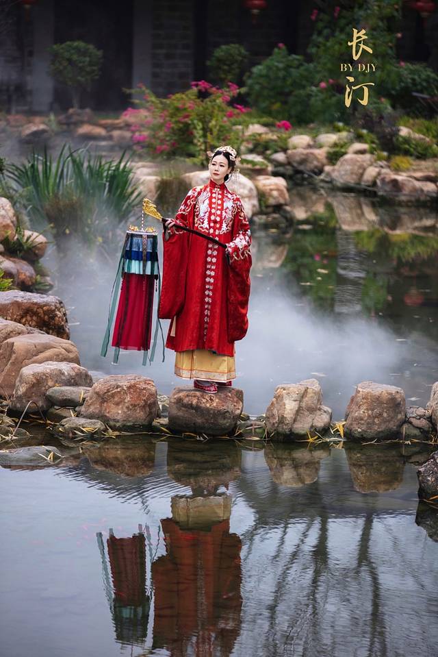 换上古代的装扮,似走进了另一个时代,一场冗长的梦,才刚刚开始,绿影幻动,总有一种感动涌上心头,我望着眼前的一池碧水,内心感慨万千。