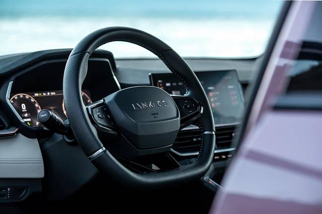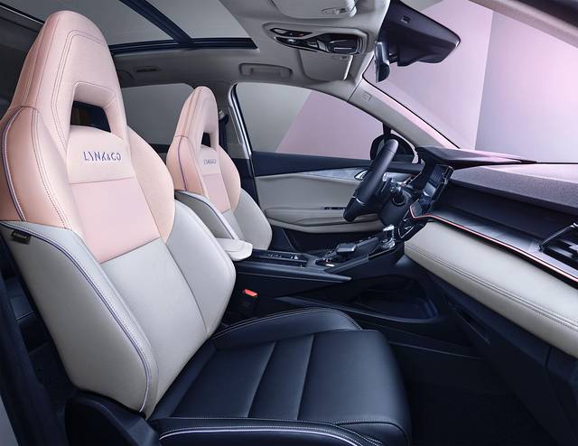 坐进车内,四周内饰设也别出心裁,领克06 SHERO必须给出排面!座椅靠背直接大胆地采用了粉白撞紫的色彩搭配,与外观色调呼应,座位则采用了圆毛触感的麂皮绒座位,舒适又美观,长时间驾驶也很OK。