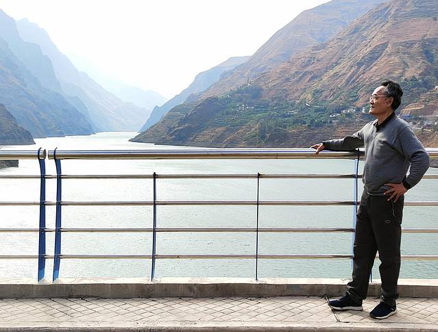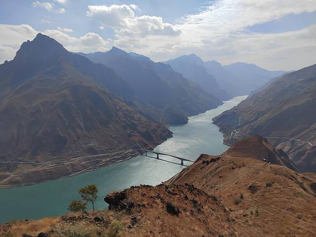 凭栏远眺,雄伟的金沙江近在眼前。江面上一座醒目的金沙江桥,这就是红军从云南到四川抢渡金沙江的皎平渡。我将下到桥上体验一下,也顺便踏上云南一足,我毕竟是云南出生的人。