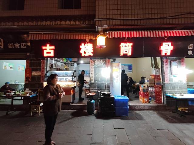 到钟鼓楼边西街啃筒子骨是会理人待客宵夜约定俗成的谢幕式,走完西街返回,选择一家正在门外炸酥肉的“筒骨”类饮食店就餐。店主为我以大骨汤为底料,加上门口刚炸好的酥肉,加上白菜和米饭,共计22元吃了个精光。原先肚子饿不说了,味道确实不错。玩笑中,我与这开了二十多年的店铺的厨师、服务员和食客等谈论饮食对健康长寿的关系的话题时,大家都兴奋异常。