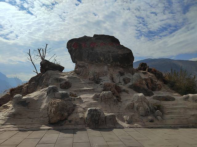 上山途中,先是路过一个停车场。停车场上的这个模型,是傈僳族的一个什么工具、乐器等的模型吗?