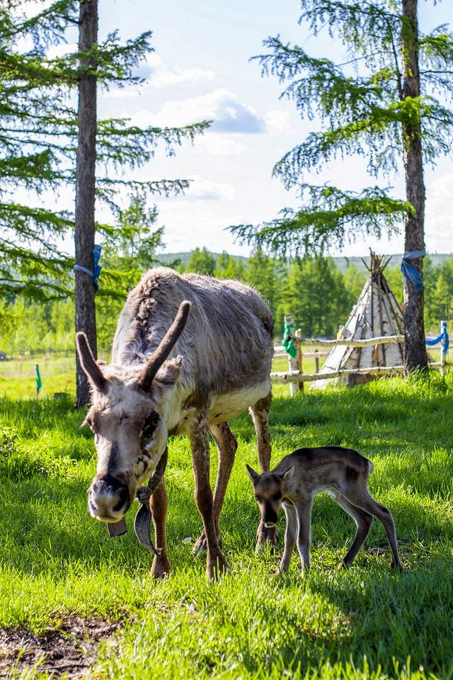 敖鲁古雅驯鹿部落遇到刚刚出生的小驯鹿,鄂温克族人跟我们说小驯鹿出生可不常见。驯鹿母亲很警惕四周,为了保护襁褓之中的孩子,特别是其他驯鹿跑过来,都被她给驱赶开来。