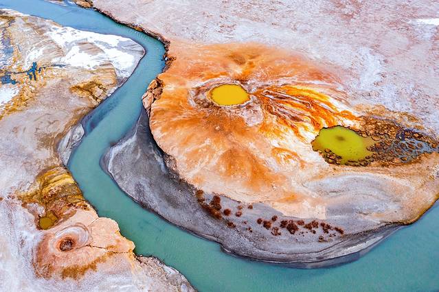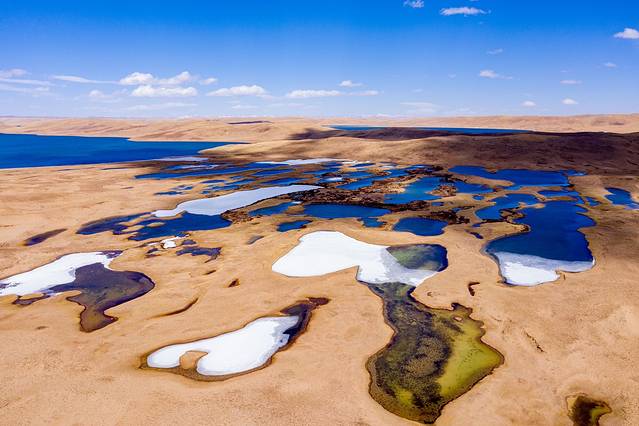 很多人看到这个场景联想到火锅里面的羊肉卷,大自然的奇特让大家叹为观止。这是位于青海省玉树 藏族自治州西部的楚玛尔河,为长江源的北源,发自可可西里山黑脊山南麓。“楚玛尔”为藏语,意为“红水河”。这是青藏高原上的一条色彩比较奇特的河流,不同河段色彩差异很大,为此我们特意去寻找了不同的河段进行拍摄。靠近可可西里和昆仑山的河段可以拍摄到这样的场景。