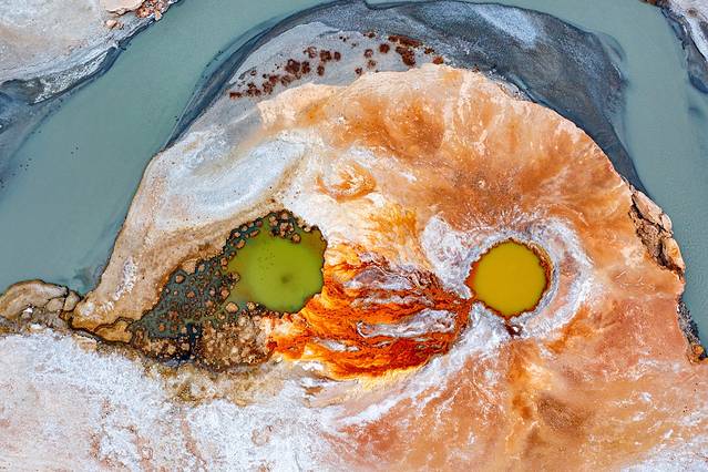 航拍下来的木吉乡比较壮观,3月底大地上还有一些未消融的雪点缀在四周,这里遍布都是休眠的火山口,需要自己去找寻一些比较漂亮的场景哦。