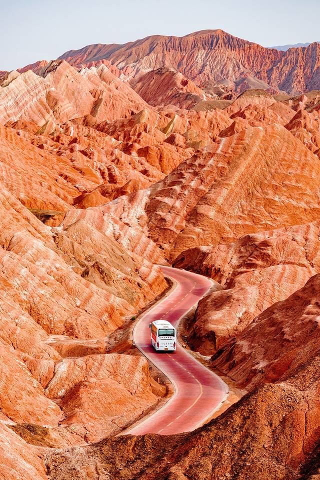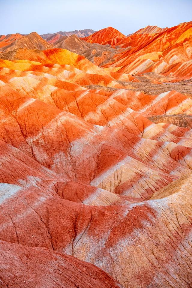 我国的七彩丹霞面积之大国内外罕见,属于丹霞地貌和彩色丘陵体的组合体。据说观赏丹霞最漂亮的时候是雨过天晴或者傍晚。我们选择的是傍晚时分,在夕阳下的七彩丹霞果然熠熠生辉,色彩艳丽。