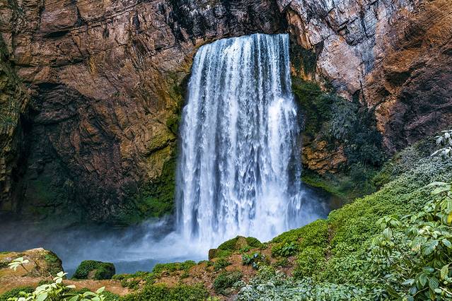 想要拍摄和瀑布近距离接触的片子就需要被淋成“落汤鸡”,基本上瀑布的水雾很容易让你瞬间淋湿。