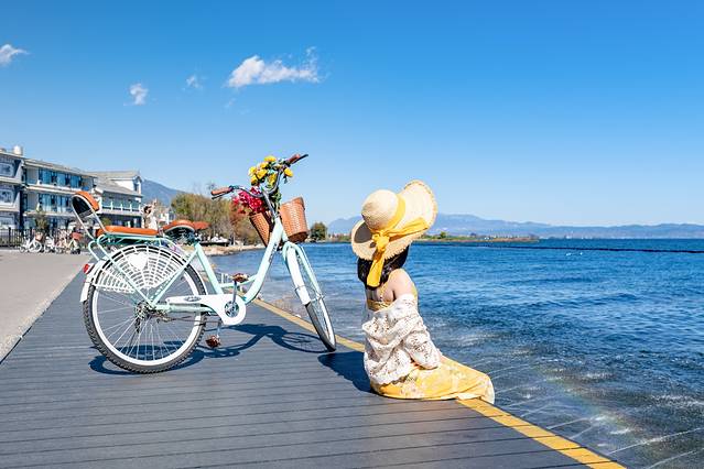 磻溪村的网红S湾,也不知道为什么迅速爆红,我们就前去看看。行走洱海边在道路上,微风拂过的还蛮惬意。但是网红点当然就少不了游客了,还有到处在拉客的当地摄影师。