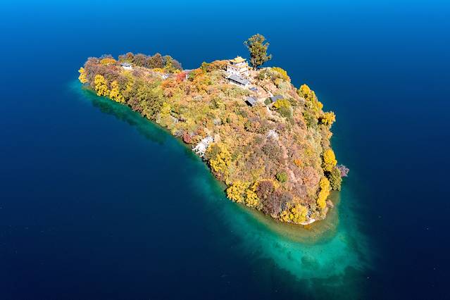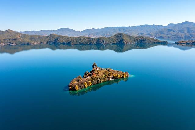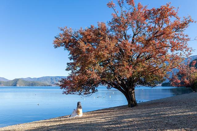 冬天的泸沽湖是一只纯净的蓝,特别是湖面宁静的时候,四周的山和岛倒影在湖面上,湖边还有很多过冬的红嘴鸥。