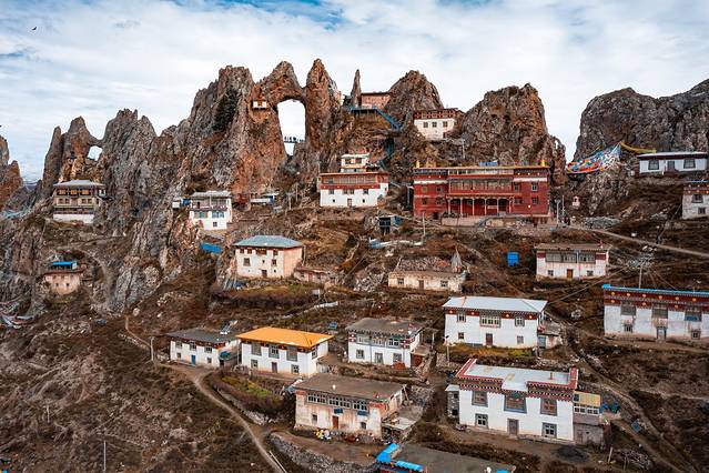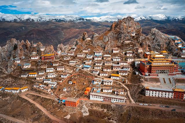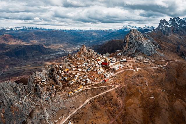 藏东秘境天空之城“孜珠寺”,坐落于苯教四大神山之一的孜珠山。从山下往山上经历上百个弯道才能到达这里,海拔4800米。