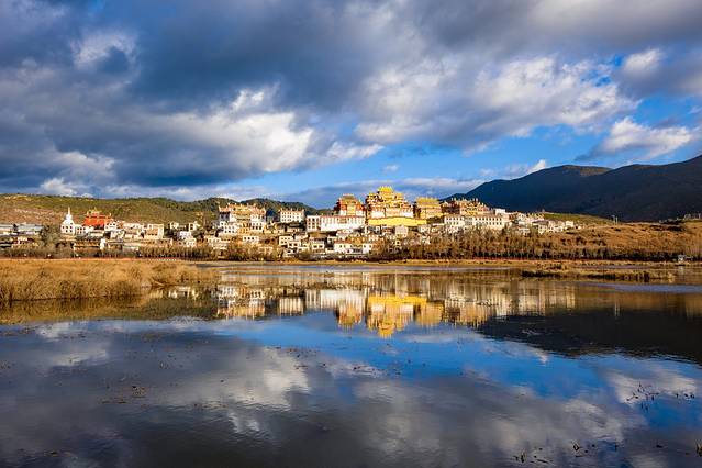 噶丹·松赞林寺是云南省规模最大的藏传佛教寺院,也是康区有名的大寺院之一,还是川滇一带的黄教中心,在整个藏区都有着举足轻重的地位,被誉为“小布达拉宫”。该寺依山而建,外形犹如一座古堡,集藏族造型艺术之大成,又有“藏族艺术博物馆”之称。最漂亮的时候是早上第一缕阳光照射在寺庙上,而且冬天早晨这里也经常起雾,在湖对面就可以看到这个寺庙的倒影。